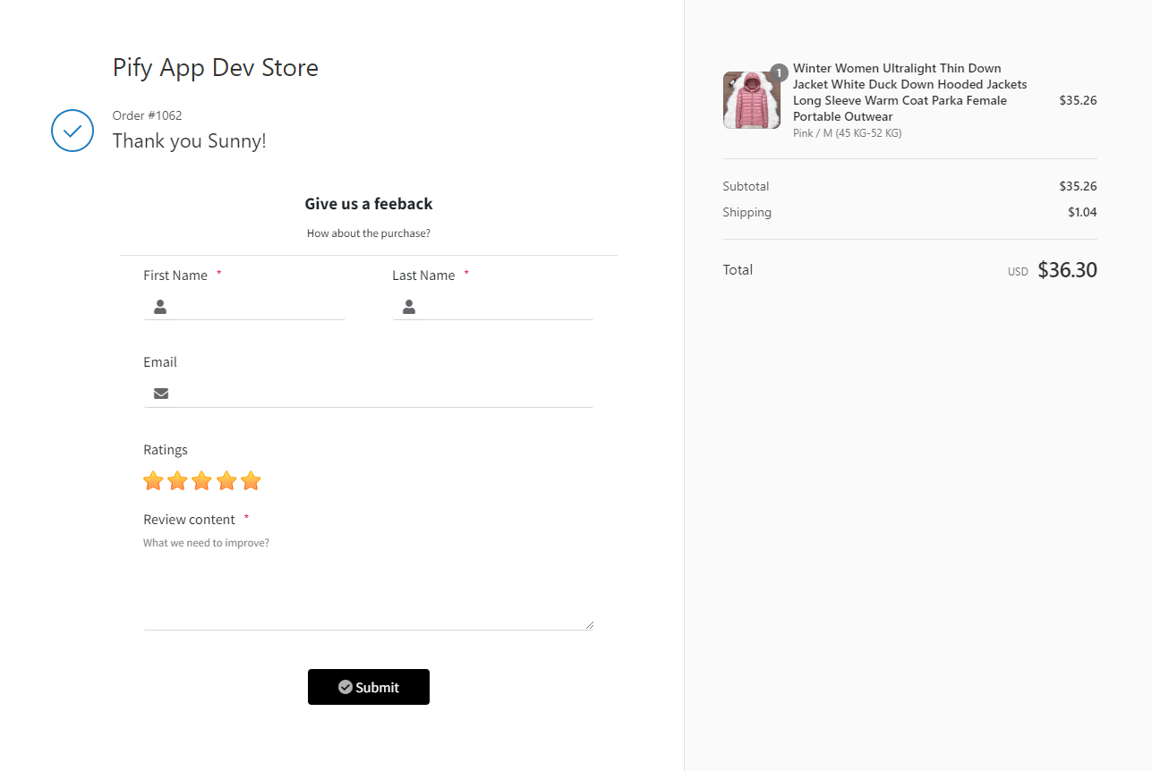 How to publish the form on the checkout & thank you page? Like the purchasing feedback form, or some other business form after checkout. Here is an example.